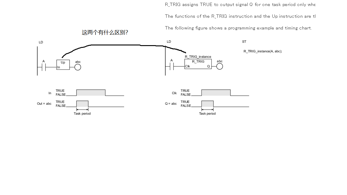 簡單理解,UP用在梯形圖,另外一個用在ST