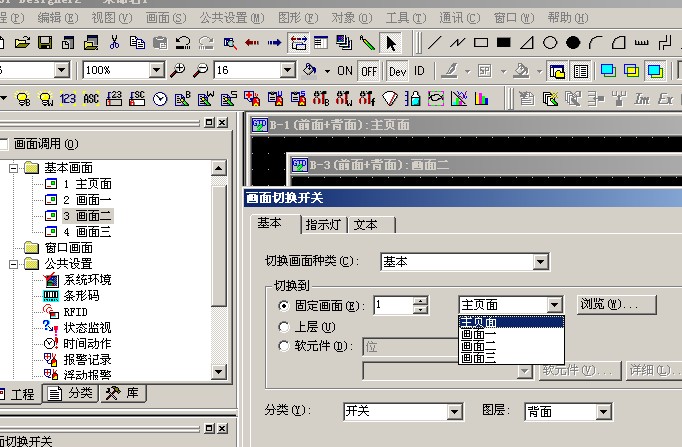 用畫面切換開關指定畫面,然后保存,對其進行仿真。按下畫面切換開關,切換開關指示燈亮,但不切換畫面,是不是我指定錯了。求高手指教