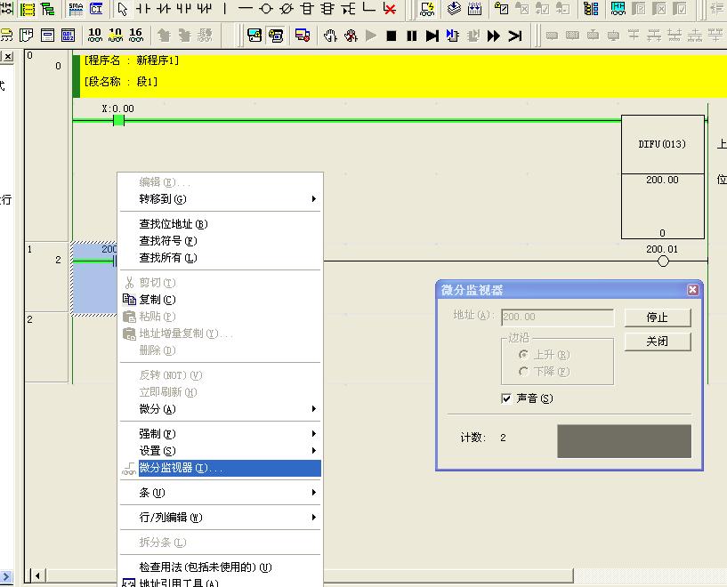 歐姆監(jiān)視模式中下降沿線圈接通,觸點(diǎn)不會(huì)動(dòng)作。怎么回事?新手