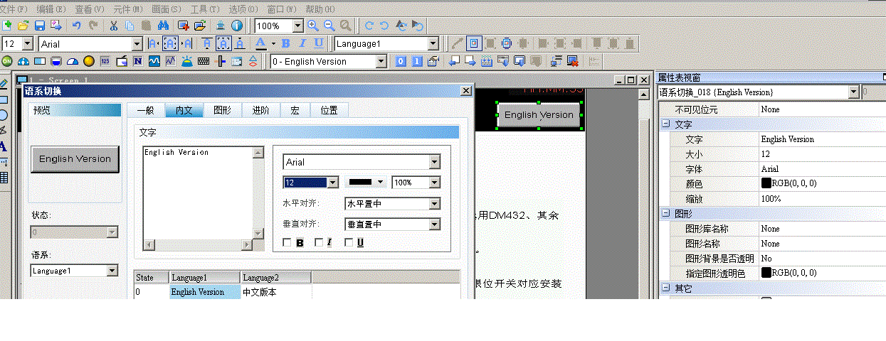 語系文件已經匯入,將系統(tǒng)的該按鈕放上點切換也沒變化