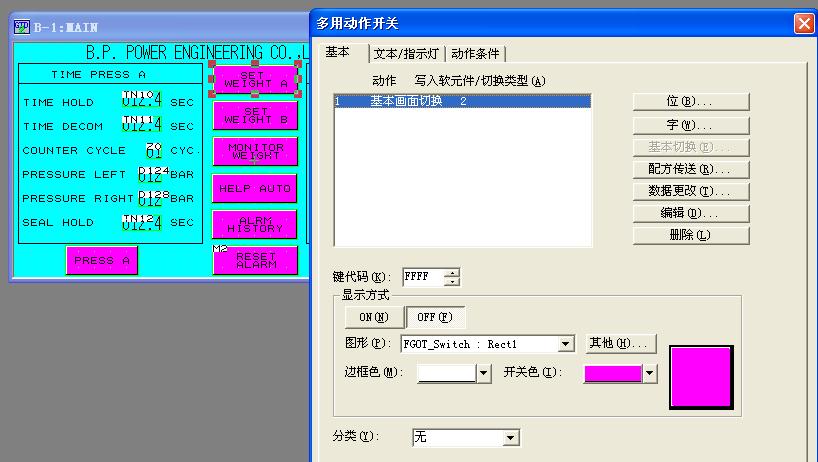 大俠,PLC用的也是三菱的。主頁面中用多用動作開關(guān)來進(jìn)入其他輔頁面。我希望在點(diǎn)擊多用動作開關(guān)時(shí)出現(xiàn)密碼輸入,然后才能進(jìn)入對應(yīng)的輔頁面。