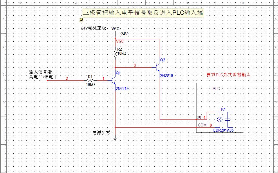用較小電壓通過三極管給PLC輸入信號(hào)