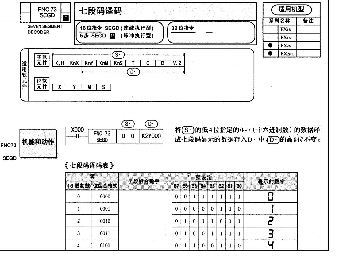 剛才仔細看了下指令說明,正負邏輯可以選擇的,PLC是負邏輯,段碼輸入正邏輯,位碼輸入負邏輯,指令可以寫成: