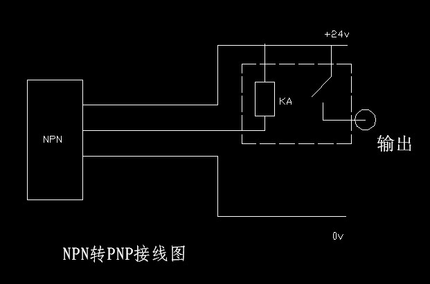 如果是PNP轉NPN,把圖中繼電器線圈一端接傳感器的輸出信號線,另一端接0V,再從0V引出一根線經過繼電器的常開點接到PLC的輸入端。這樣就完成了PNP轉NPN。