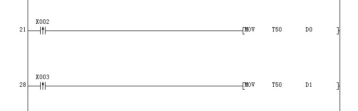 這樣要看時間繼電器是否計時時間到,讓其延時觸點閉合。只要閉合,PLC采集到輸入信號就會將其時間寫到D0/D1中。
