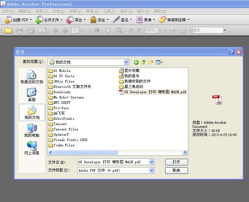 2、GX DEVELOPER 文件選擇打印機設置,打印機名稱選Adobe PDF,然后打印就行,文件就轉換為PDF了。
