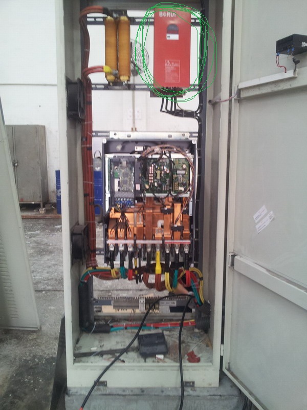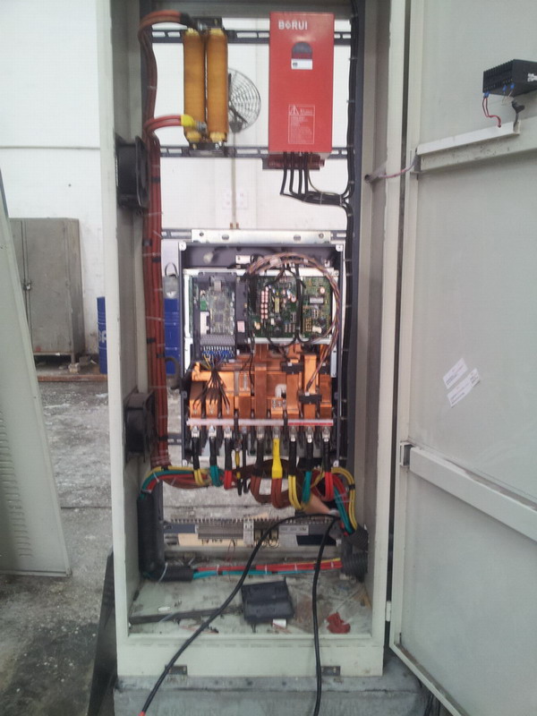 一臺石材框架鋸意大利的設備,飛輪裝變頻器速,三菱A740-132K的變頻器,加裝制動單元,不多說上圖