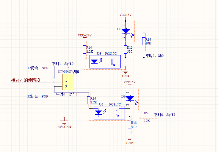 樓上的您好!我想做跳線就是不確定客戶用什么樣的傳感器,也就是不管用PNP還是NPN傳感器,要保證給單片機的的信號時一致的。