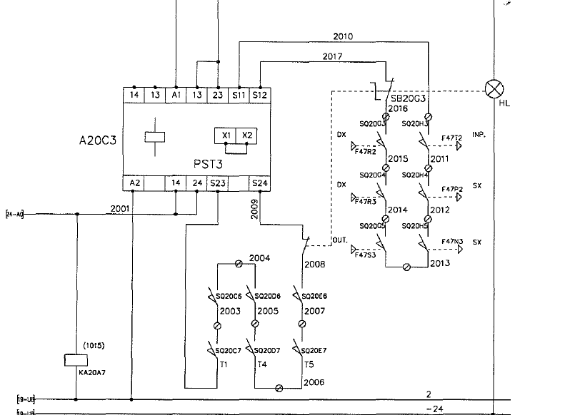 這個(gè)是一個(gè)意大利進(jìn)口設(shè)備的圖紙上面的。沒(méi)有看見(jiàn)這個(gè)東西的實(shí)物。分析原理圖,這個(gè)東西 應(yīng)該是把一系列的行程開(kāi)關(guān)串并聯(lián),滿足條件后動(dòng)作自身的繼電器的這樣一個(gè)東西。