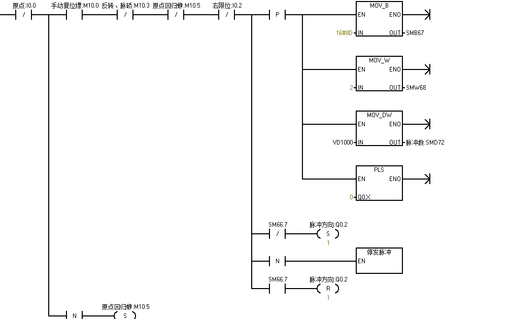 網上看到說繼電器類型的PLC不能發送脈沖,所以打算用224XP的,但是日系伺服電機都是低電平輸出,但是PLC224XP是高電平輸出,程序寫入可以發送脈沖,但是驅動器沒有接收到脈沖故電機也不轉動;改用226繼電器類型PLC將輸出改為低電平輸出后驅動器可以接受脈沖,電機也可以工作,但是若PLC發送10000個脈沖,驅動器顯示接受的脈沖遠遠不止10000.,而且Q0.0發送脈沖,Q0.2定旋轉方向,Q0.2不管通斷電機總保持一個方向旋轉。伺服參數中旋轉方向設定Pr0.06和輸入模式設定Pr0.07選擇了0.3,即為脈沖串+方向。