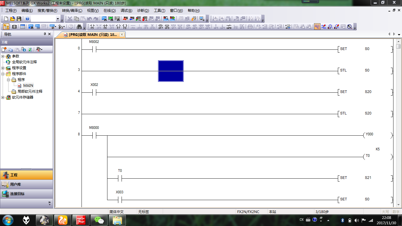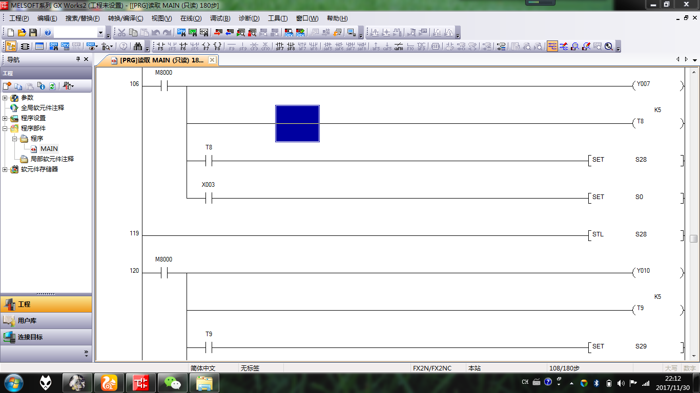 引用引用第3樓ykykkhor于2017-12-01 11:11發表的 :是....截圖不全,不過看過你使用 [RET] 指令, 就知道你是調用子程序 (Call Sub program)。在調用子程序時, 是不可使用延時。所以, 請在將其搬移到主程序 (Main - FEND 之上) 使用即可。祝你成功