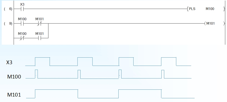 按下 x 3 第一次 是 M101 ON , 緊接著 按下 x 3 第二次 ,M101 Off