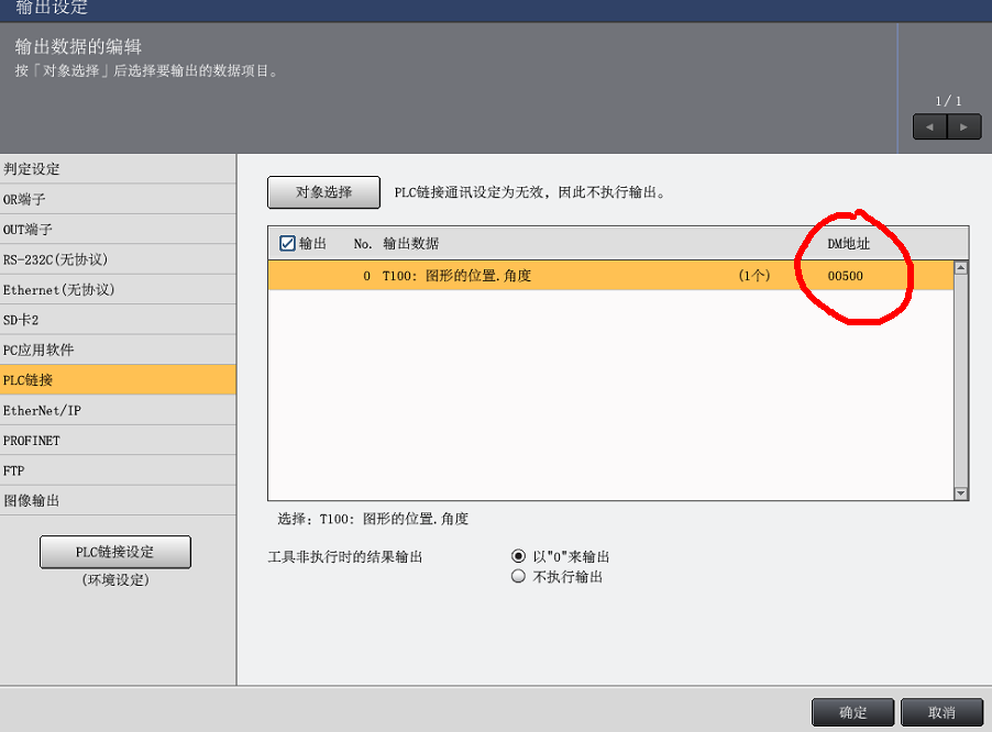 2.輸出設定→PLC鏈接→對象選擇→選擇T100圖形的位置→角度→全部→確定
