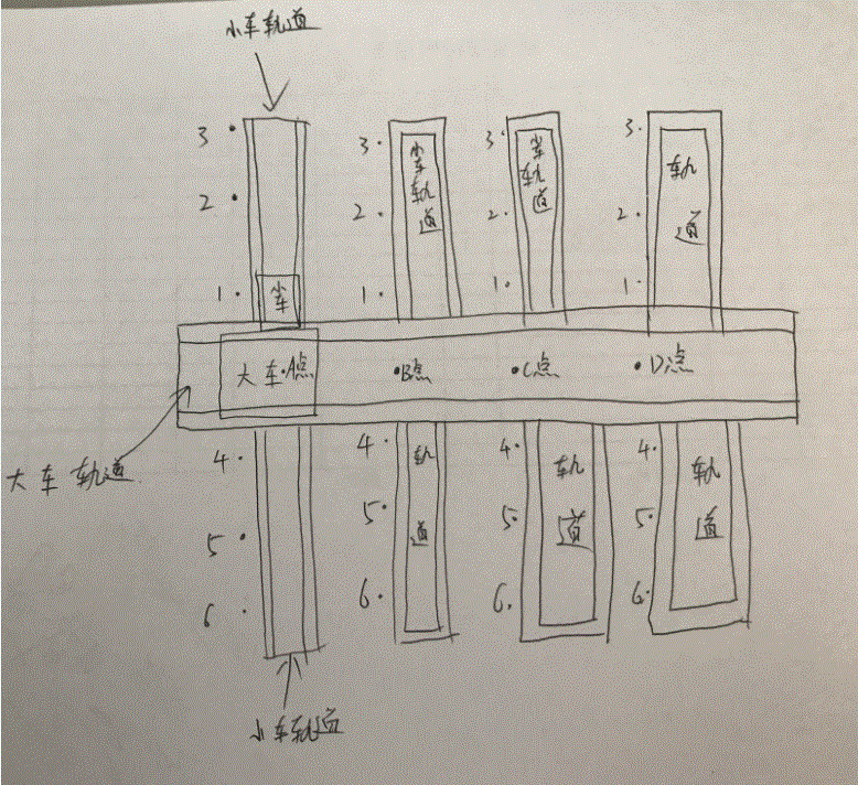 貌似是大車載著小車左右移動,到指定的小車軌道。小車在移動。。。。是這樣的嗎