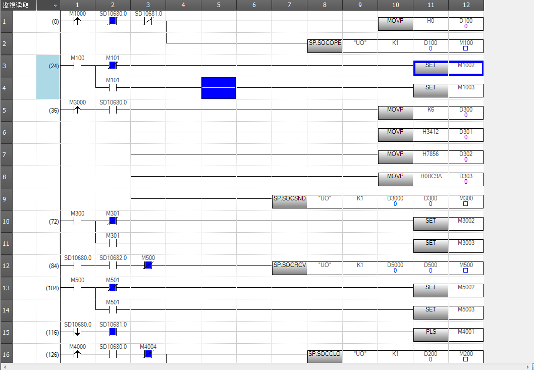 引用引用第8樓tkggtdkjpl于2018-08-16 15:21發(fā)表的 :做過三菱內(nèi)置以太網(wǎng)和智能相機socket通迅,從你的載圖上既沒看到軟件發(fā)給PLC數(shù)據(jù)也沒看到有PLC發(fā)給軟件的數(shù)據(jù),不知道你想問什么。