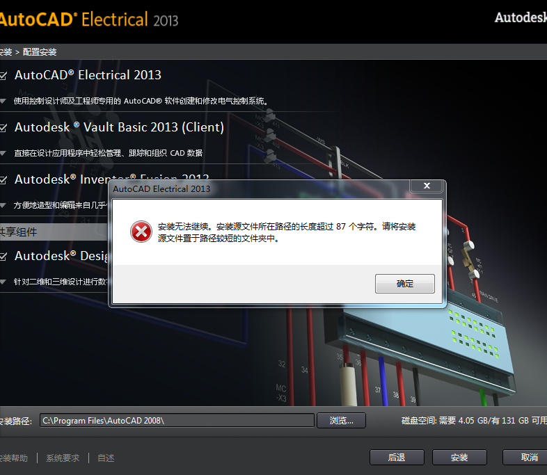 他上面寫的很明確啊,你肯定是安裝文件放在很深的目錄里。