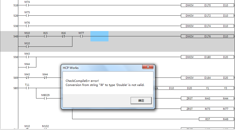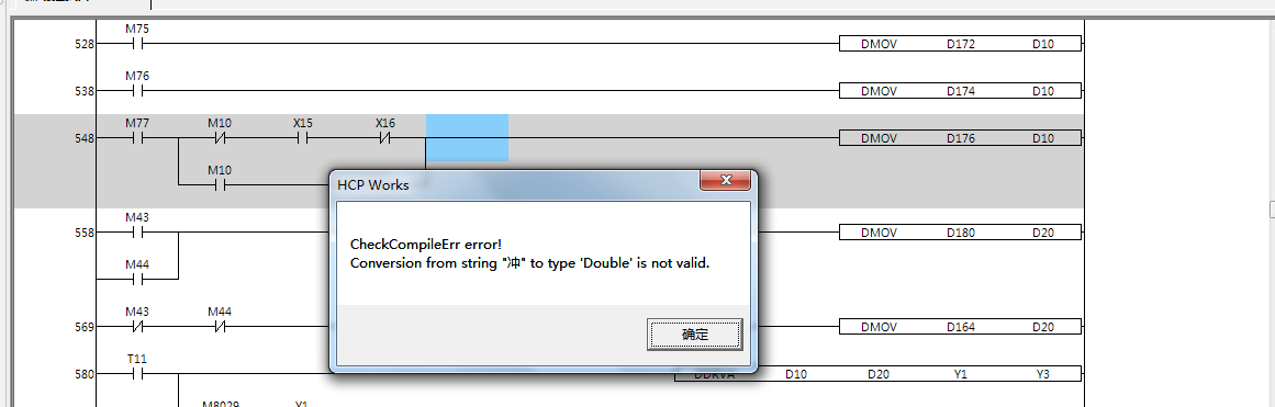 檢查編譯錯誤 從字符串“沖”轉換為“double”類型無效 禾川估計抄襲的三菱英文的GX Works2 ,提示都奇奇怪怪的。 |