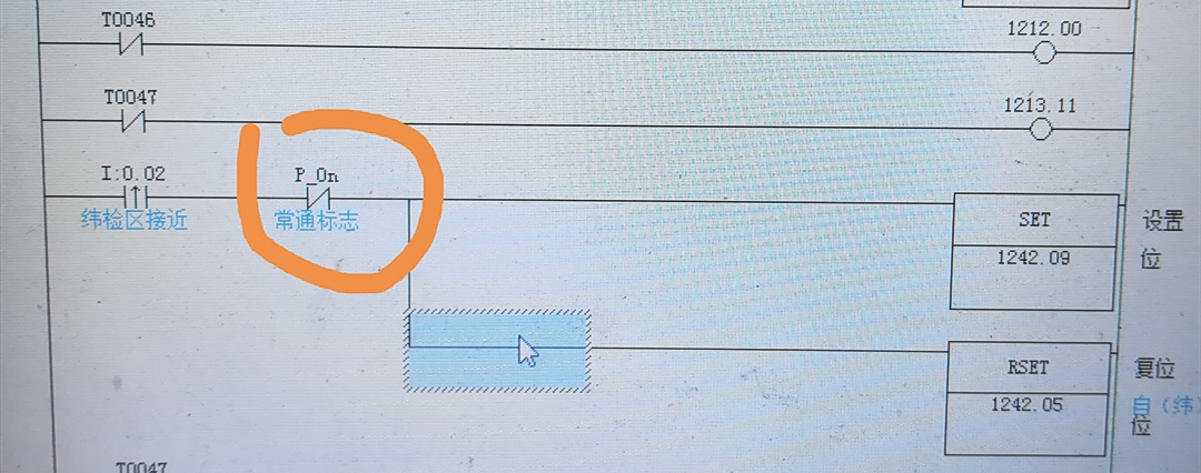 請問圖中這段程序,用到了一個p_on的常通位,但是是用了一個常閉指令,那這段程序有什么作用,plc通電常通位一直有電,那不就意味著這個常閉開關(guān)一直斷開,后面的程序如何才能執(zhí)行呢?后面的這個置位點1242.09,后面程序是有用到的。