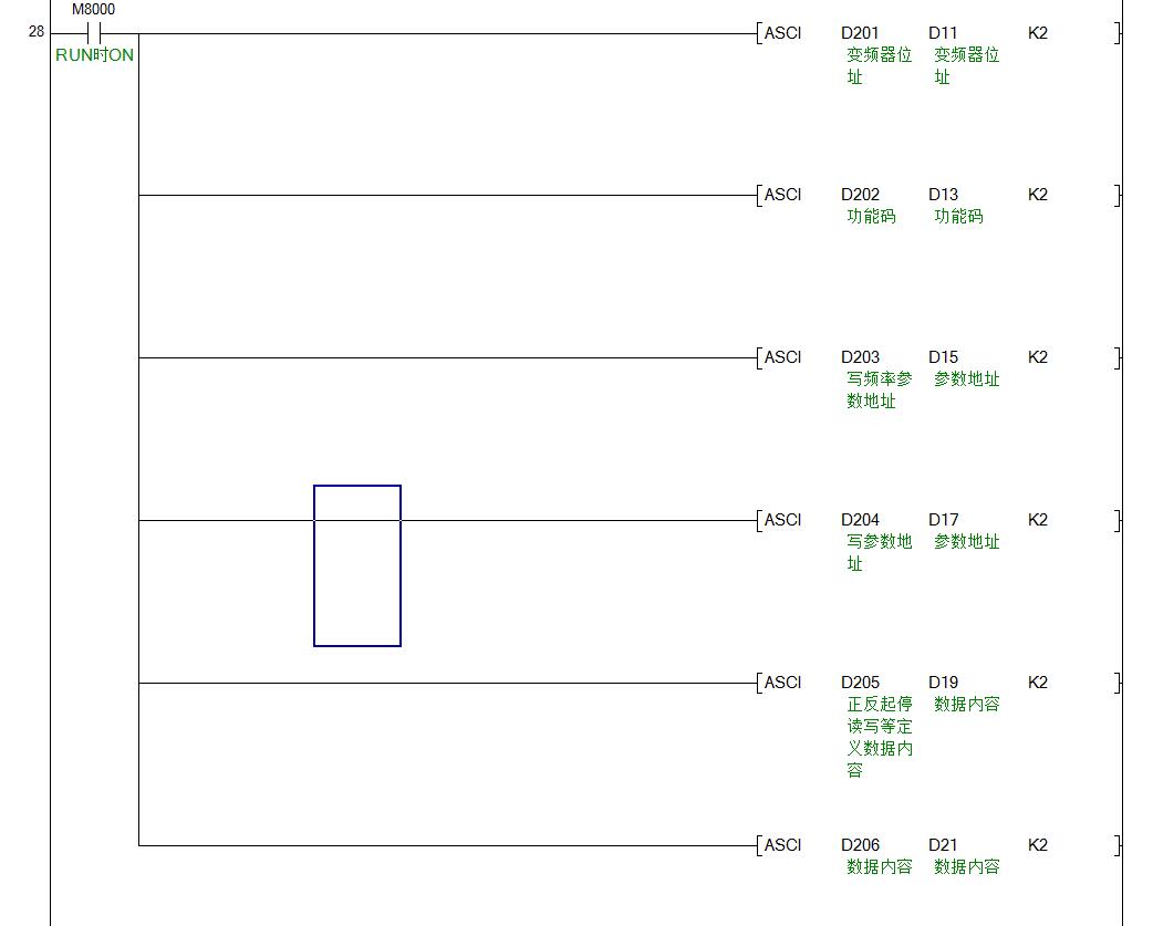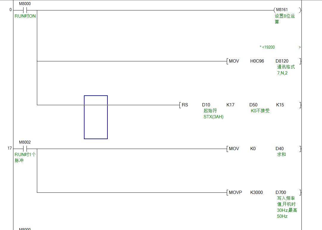 如下圖,控制變頻器的正反轉,停止,寫入頻率(485BD通訊)都沒有問題,就是讀取不了頻率,請問問題出現在哪?附件有程序,臺達變頻器說明書