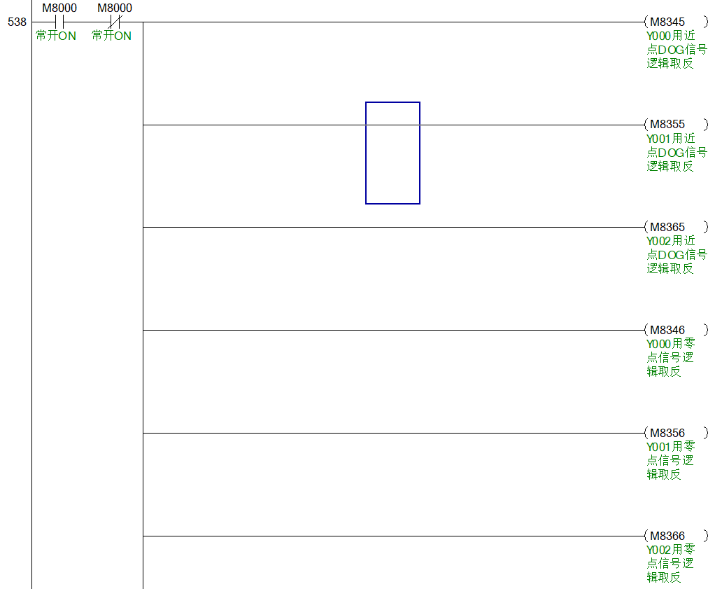 M8000就是PLC運行時一直ON,看程序就知道是屏蔽掉這些點的輸出,也就是沒用。這段程序可能原來有用到過,但是現在不用,就屏蔽掉了?赡苡X得刪除掉麻煩或者后面調試需要用回就沒刪除掉。