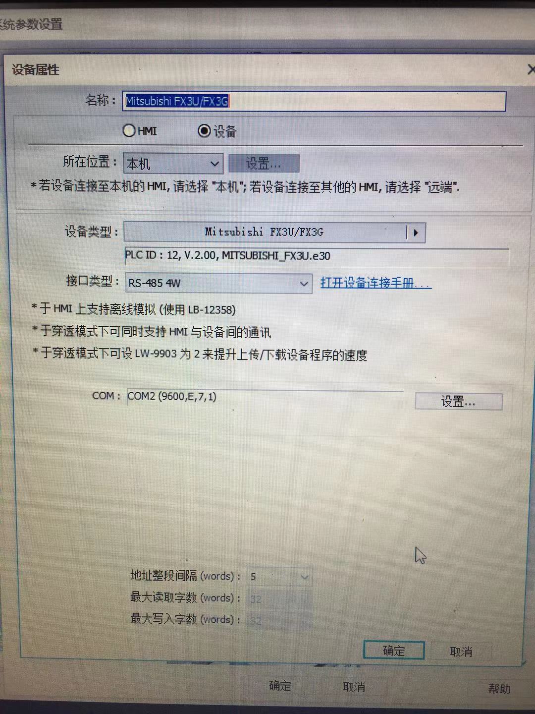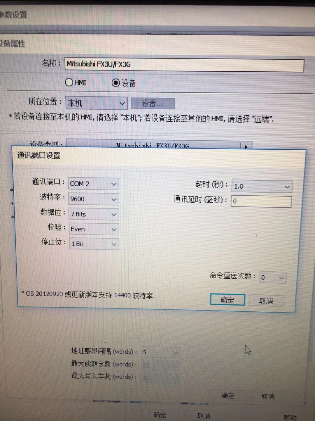 選的設備類型不對  要選三菱fx232/485 不能和普通的一樣選  注意下預設站號