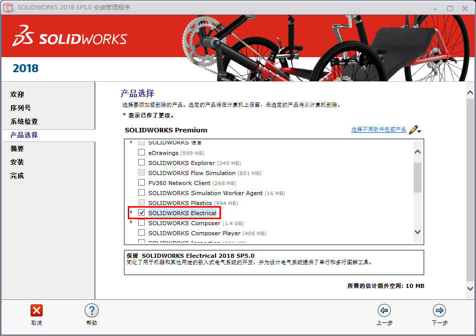 安裝的時候需要先斷網,選擇功能的時候只用選擇【SolidWorks Electrical】就可以,其他的都可以不裝。