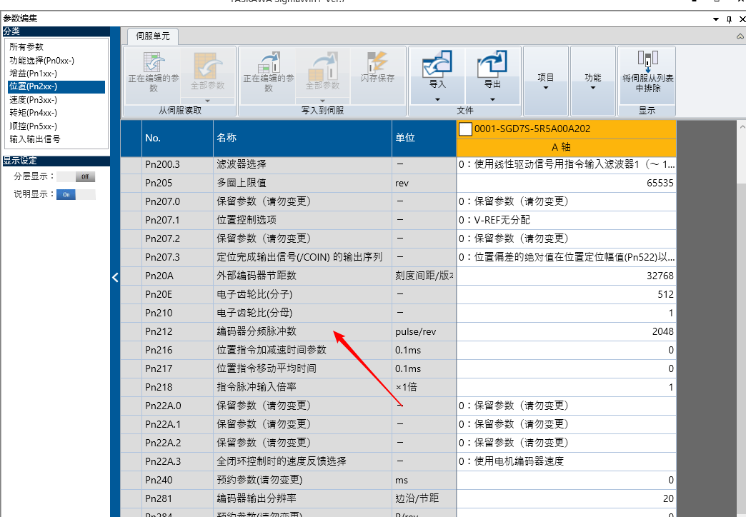 小弟第一次單獨做項目,求大神支招,項目有個工位,龍門清洗,有兩個軸,伺服單元是SGD7S-5R5A00A202,伺服電機是SGM7J-08AFC6S,Y軸是皮帶輪傳動,Z軸是絲杠(帶抱閘)。皮帶輪周長190mm,絲杠導程是5mm,兩個安川伺服電機都有行星減速機,減速比5:1。編碼器用的是7系24位。求大神支持,我的電子齒輪比該怎么設定呢?