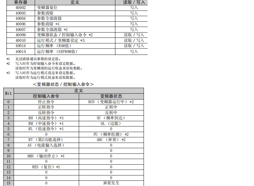 這個不是很理解。變頻器的說明書和對應的功能碼地址如下圖,但是不明白40009然后怎么變成4000901了?對嗎?