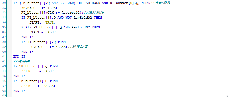 雙按鈕啟動設備,要求按單邊按鈕可啟動某夾子,再次按單邊按鈕時可關掉夾子,雙手啟動時又執行了一次單邊按鈕(比如第一次按單邊夾住,接著雙鈕啟動設備觸發第二次),因為不同步問題造成夾子又松開,大神請教下有什么好方法,我現在有時雙鈕啟動時沒有關夾子,有時雙手啟動時關掉了的情況