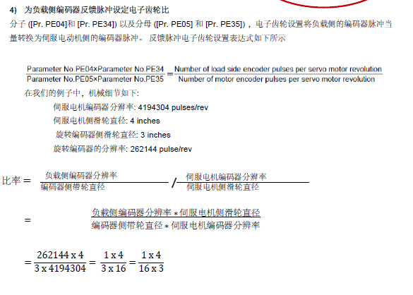 這個我用過,按照手冊上算法約分就可以了沒有問題的,但是不能用每轉脈沖數PA05,每轉脈沖數還是根據伺服電機的編碼器算出來的值,只能設電子齒輪比。
