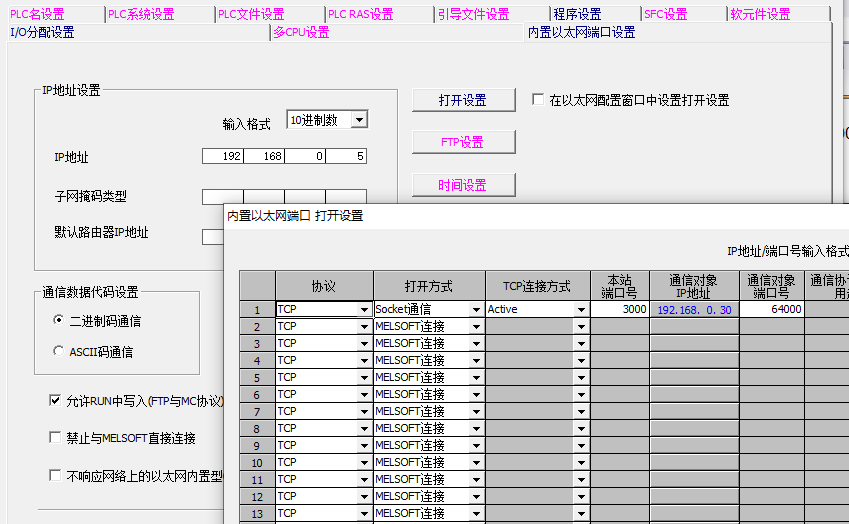 求大神寫一個例子!Q系列PLC內置以太網Socket通訊方式讀取參數值的程序!怎么都讀不出來!