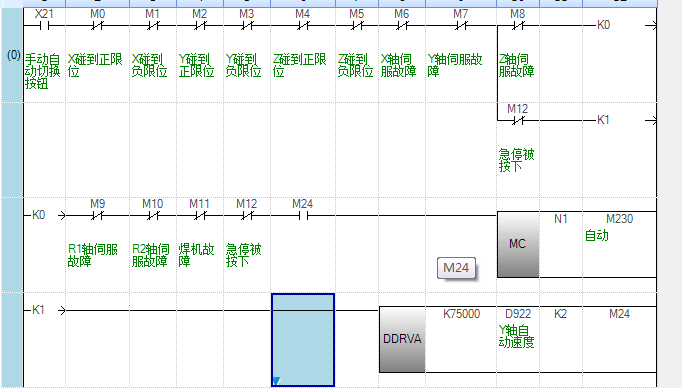 如圖所示,X21 on后,軸2無動作。M0-M12都是off.