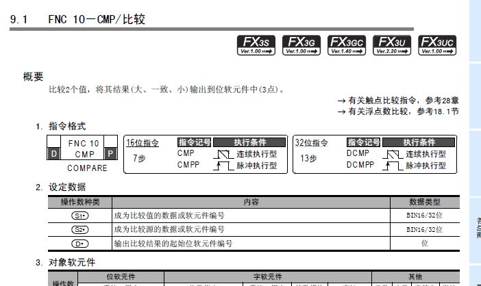 而POP指令僅標注FX3U,表明其僅支持FX3U機型。