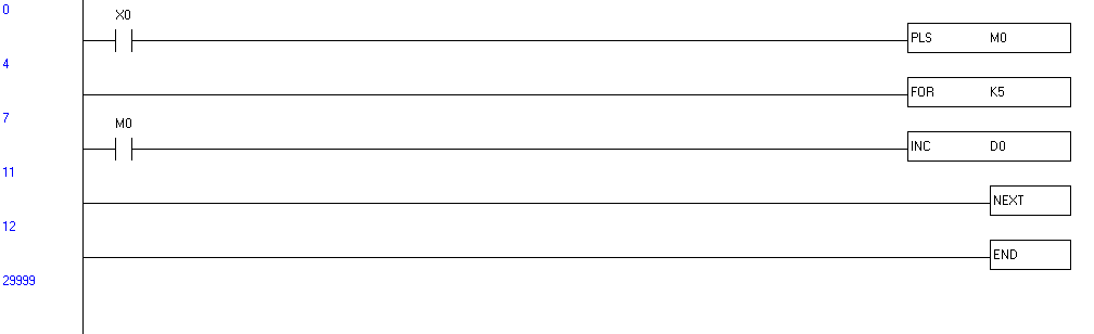 第一張圖里M0接通D0+1,第二張圖里M0接通D0+5,我的理解是第一張圖里第一次循環M0會產生上升沿,剩下的循環M0一直接通不會再有上升沿。第二張圖里一個循環里M0一直接通。