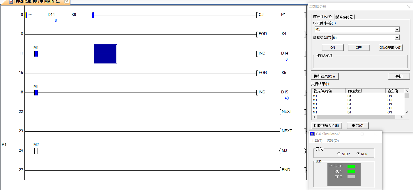 3:反過來 D14前M1常通,D15前M1上升沿,結果D14到8了,已經執行跳轉了, D15也才1,D14已經加到8了,那表示已經至少有幾個掃描周期過去了?D15怎么才來得及加1?