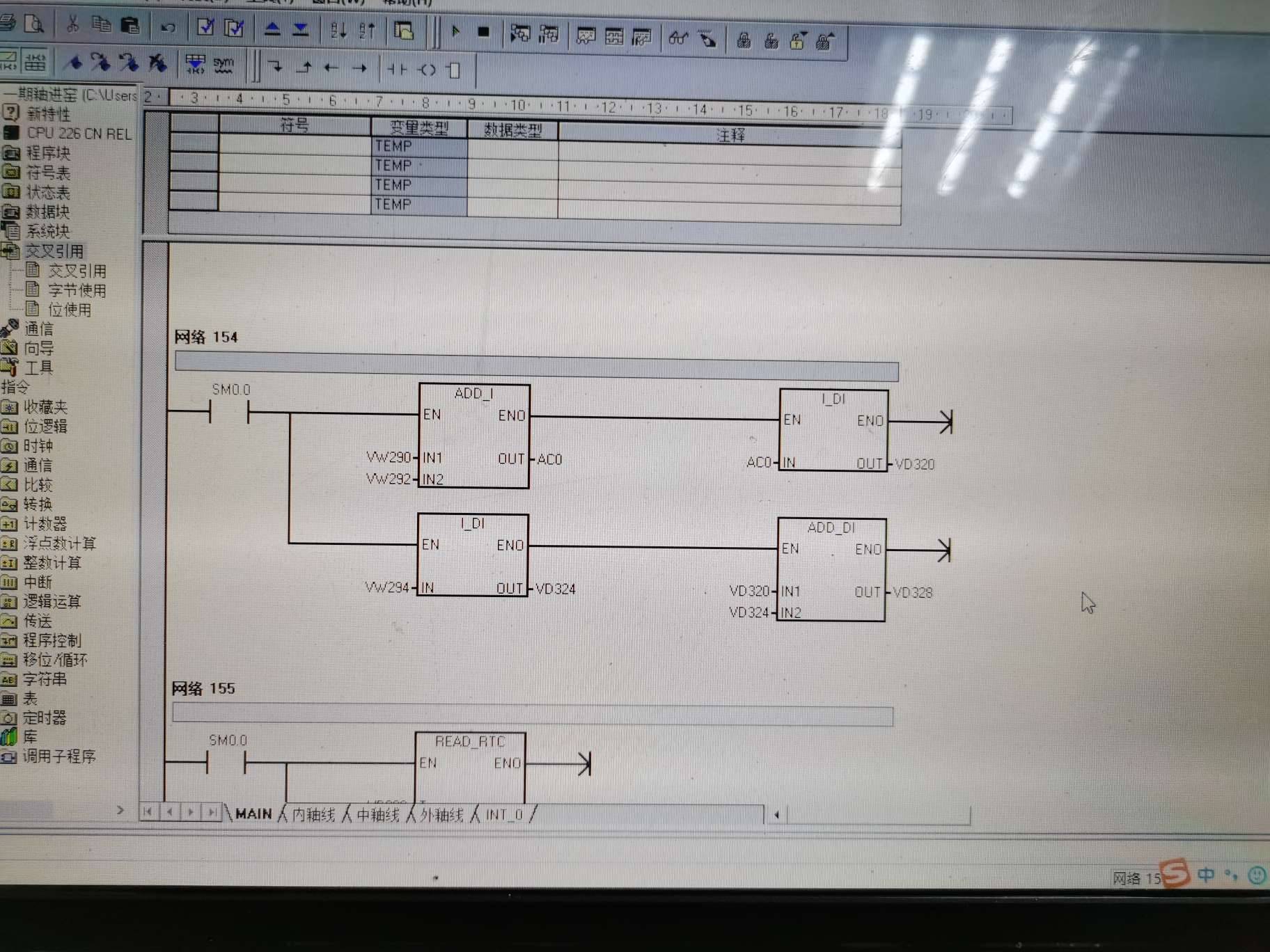 程序為計每個班產量,M30.0條件是觸摸屏宏指令比較交接班時間。現在的問題是VD332上班總產量比實際的少幾千,正常是58000左右顯示只有51000左右,vw190vw192vw194都是正確的,vd328實時觀察也是正確的,查程序沒有重復使用的地方,這個是怎么回事,該怎么解決呢?