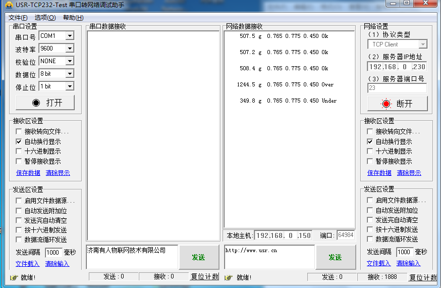 PS:對方是稱重設備,只發(fā)送數(shù)據(jù),不需要接收,對方做服務器,通訊助手已經(jīng)成功