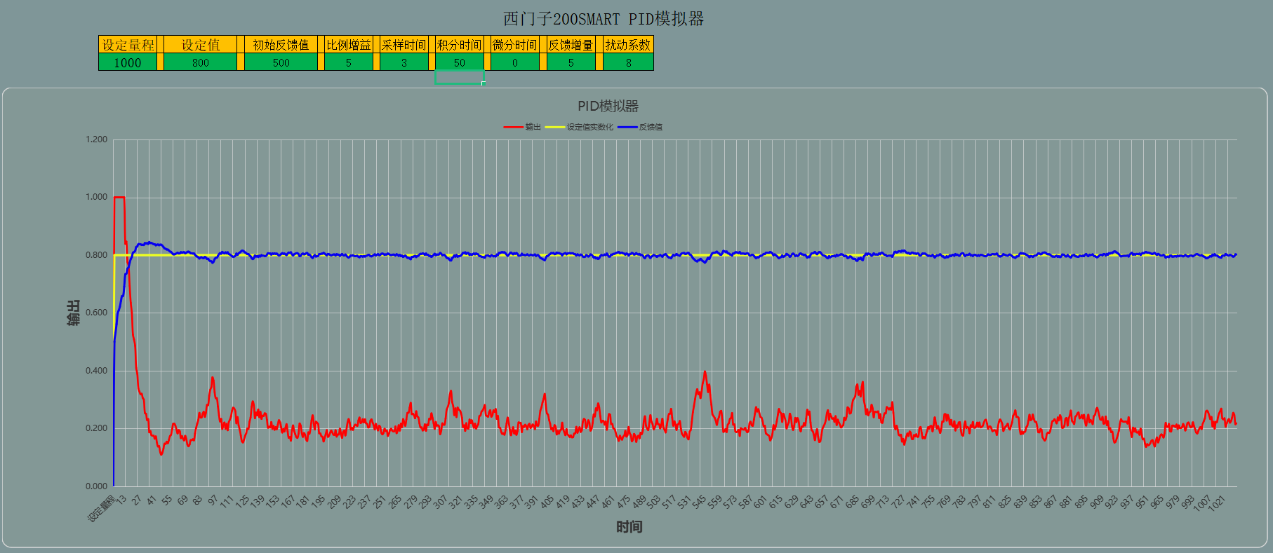 根據200smart的PID算法,可對擾動值及輸出反饋增量進行設置模擬各種工況,對200smart PID算法更深入了解。