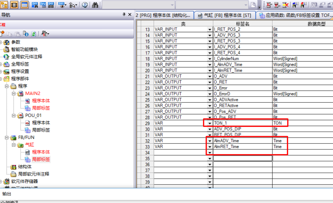 就是FB中局部標簽建立time定時器變量,在梯形圖中和普通定時器使用方法一樣。