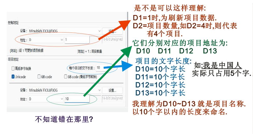 他分別對應(yīng)的位置是妳的文字長度和項目位址來決定,不管你實際使用了幾個字,如果你設(shè)定長度10就是10個D。