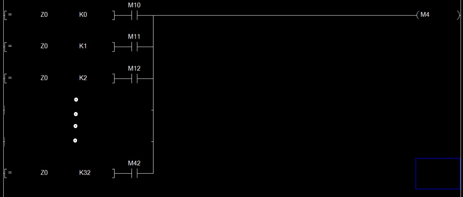 那意思就是只要M10~M32有任一位 ON ,M4就會ON,比較一下就行,不需要糾結在變址吧?