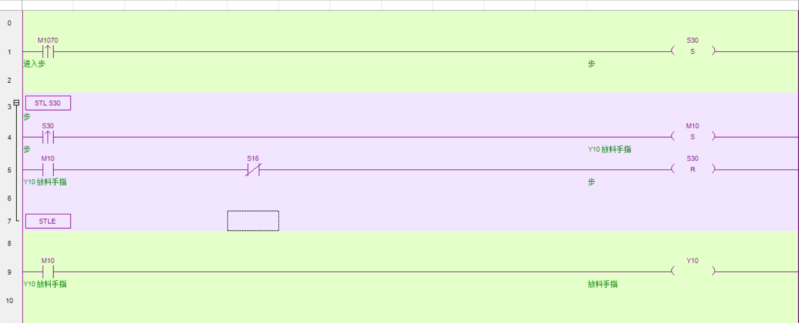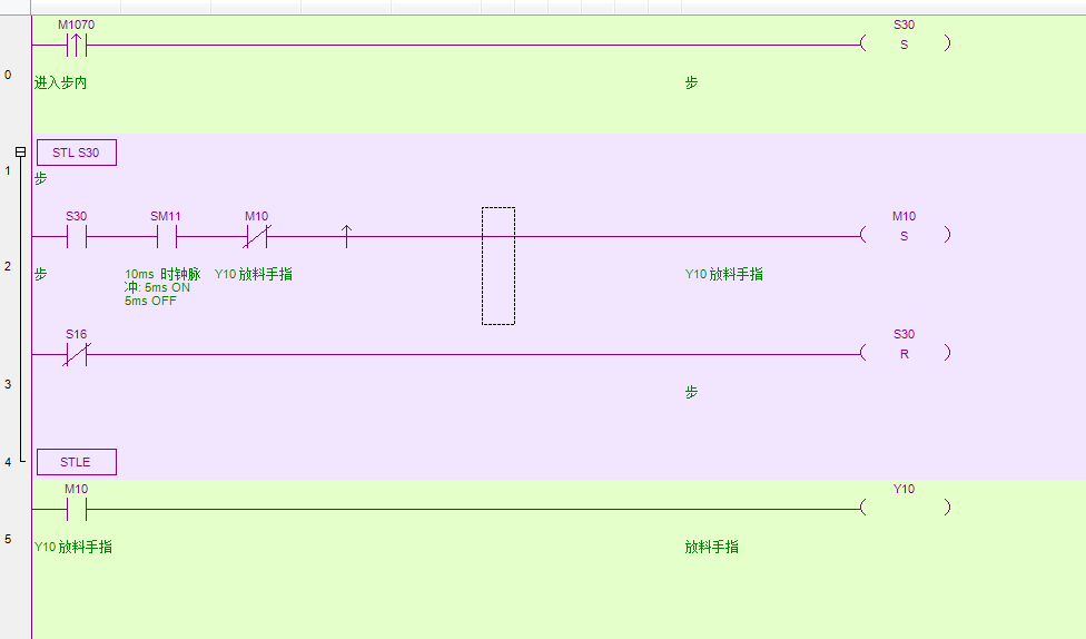 這個很好理解啊,你看一下先后順序就行了。你先SET S30,S30接通瞬間是有一個上升沿,可是你有沒有發(fā)現(xiàn),S30的上升沿是在S30的步里面,步里面的程序要步接通以后才能運行,所以就SET不了M10。你可以在步里面LD S30 TMR T30 K1 K10(用一個延時讓它們的邏輯先后順序分明),然后LD T30 SET M10 RST S30。這樣百分之百不會有問題 |