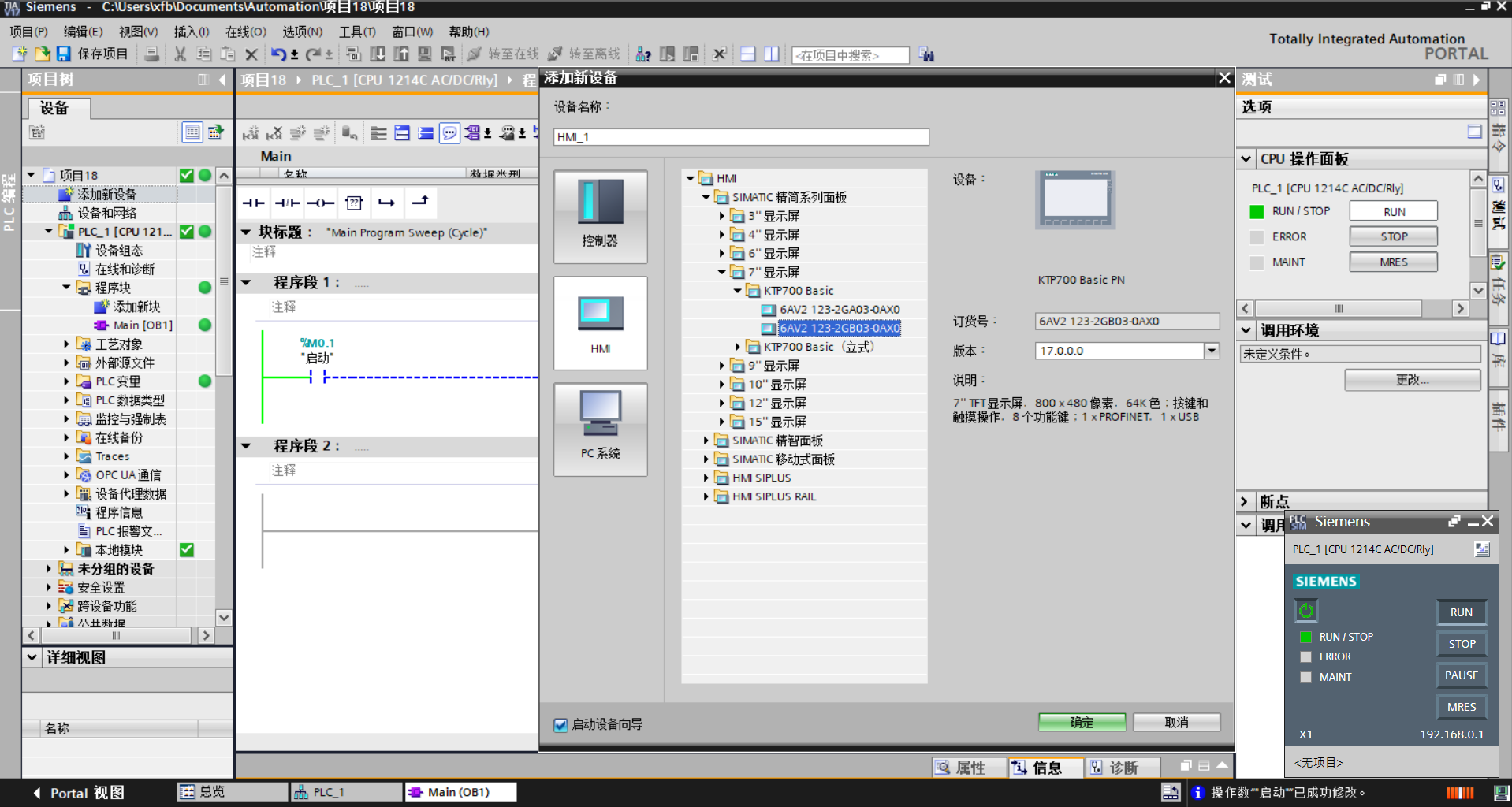 PLC和HMI 都模擬仿真
