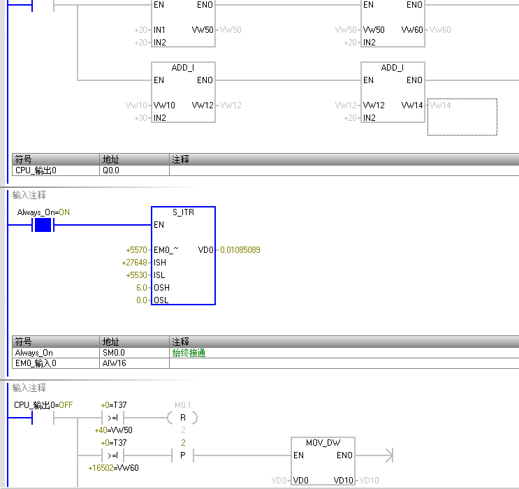q0.0沒有接通的情況下vw60怎么會有數值呢?而且數值遠大于我的加法結果呀!這是什么原因