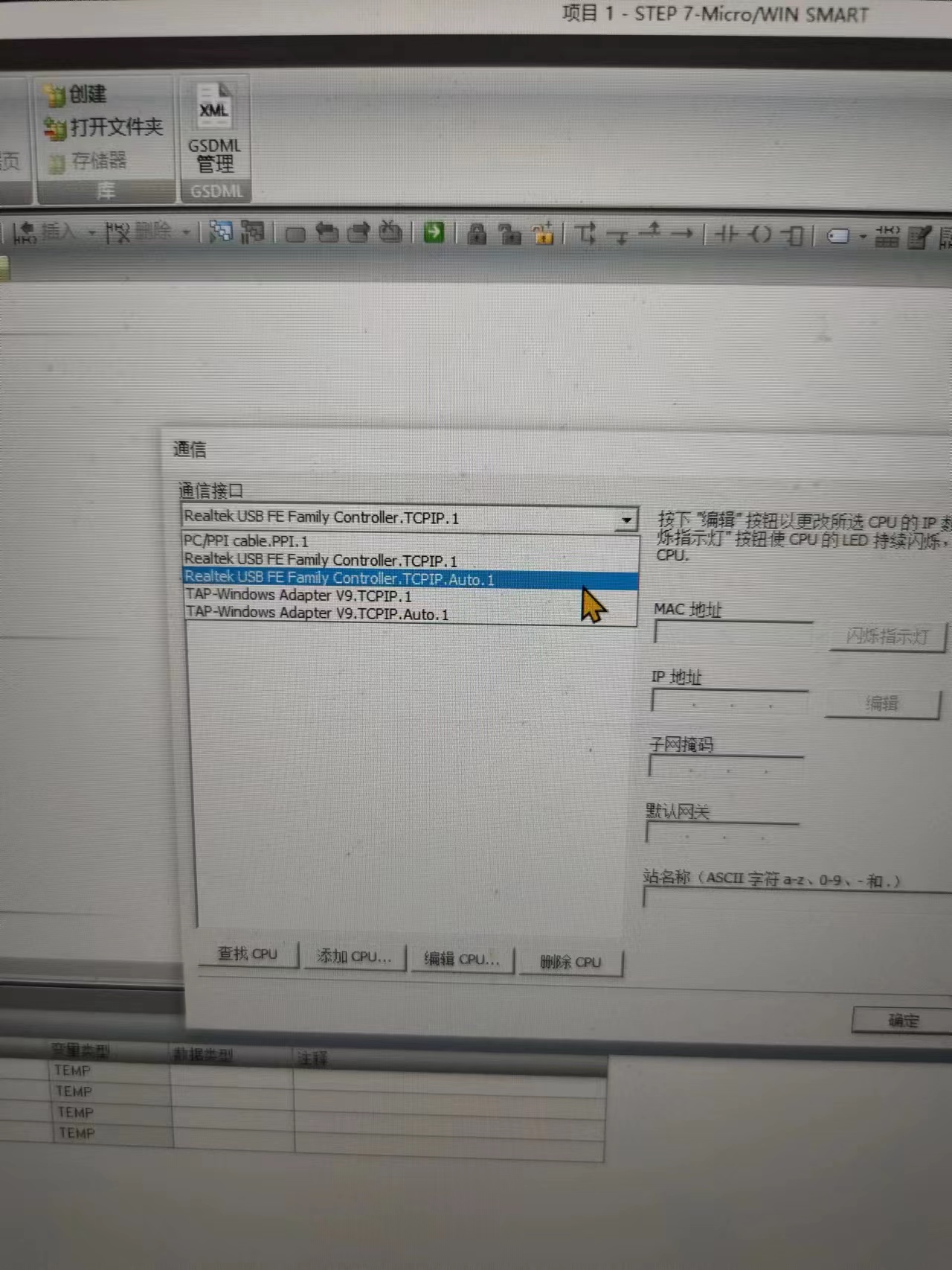 你用的是那種USB轉(zhuǎn)RJ45的網(wǎng)卡是吧。有不少網(wǎng)卡是沒辦法搜到PLC的。只能是手動(dòng)添加PLC的IP地址。