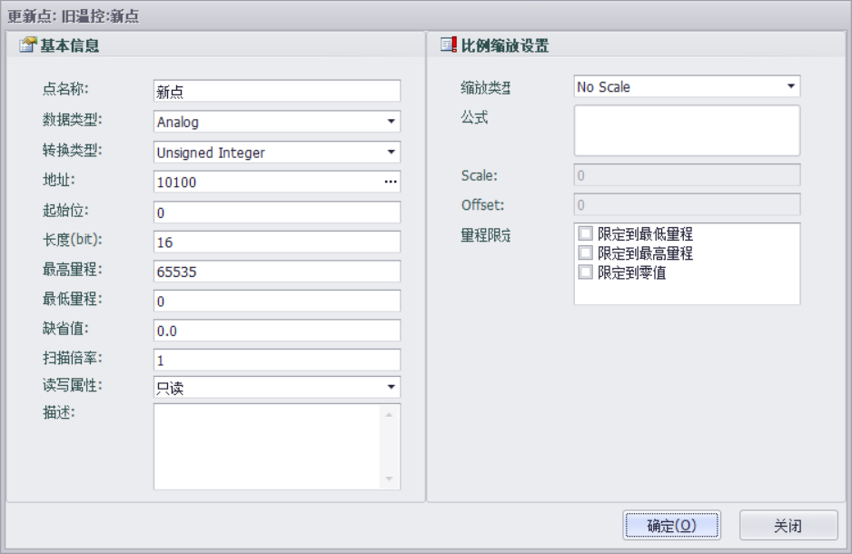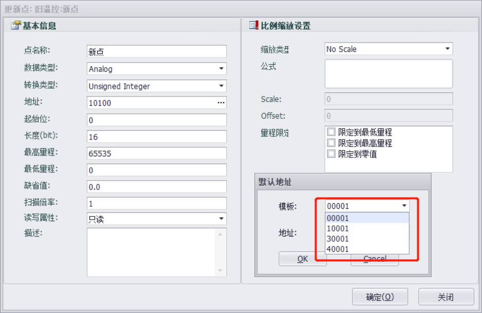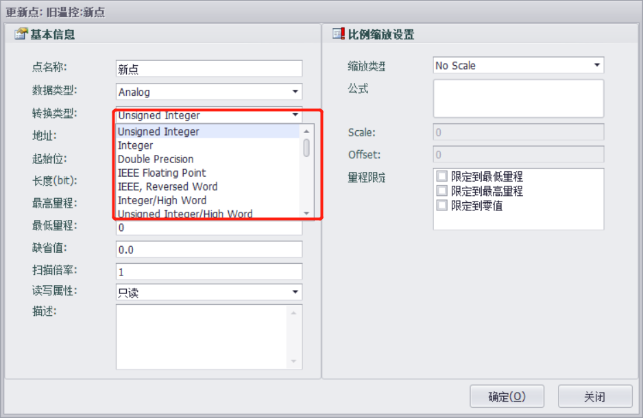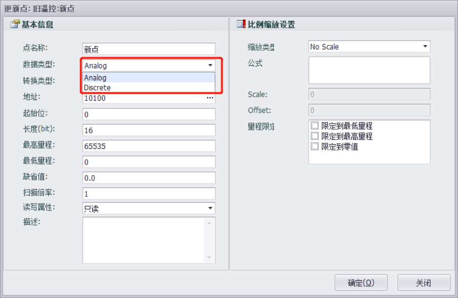 如果是MODbus協議,那SP的地址是40001(要看起始地址是從0還是1開始)如果起始地址是0開始,那直接填40000,數據類型就選連續式模擬量,數據長度16bit,其他默認