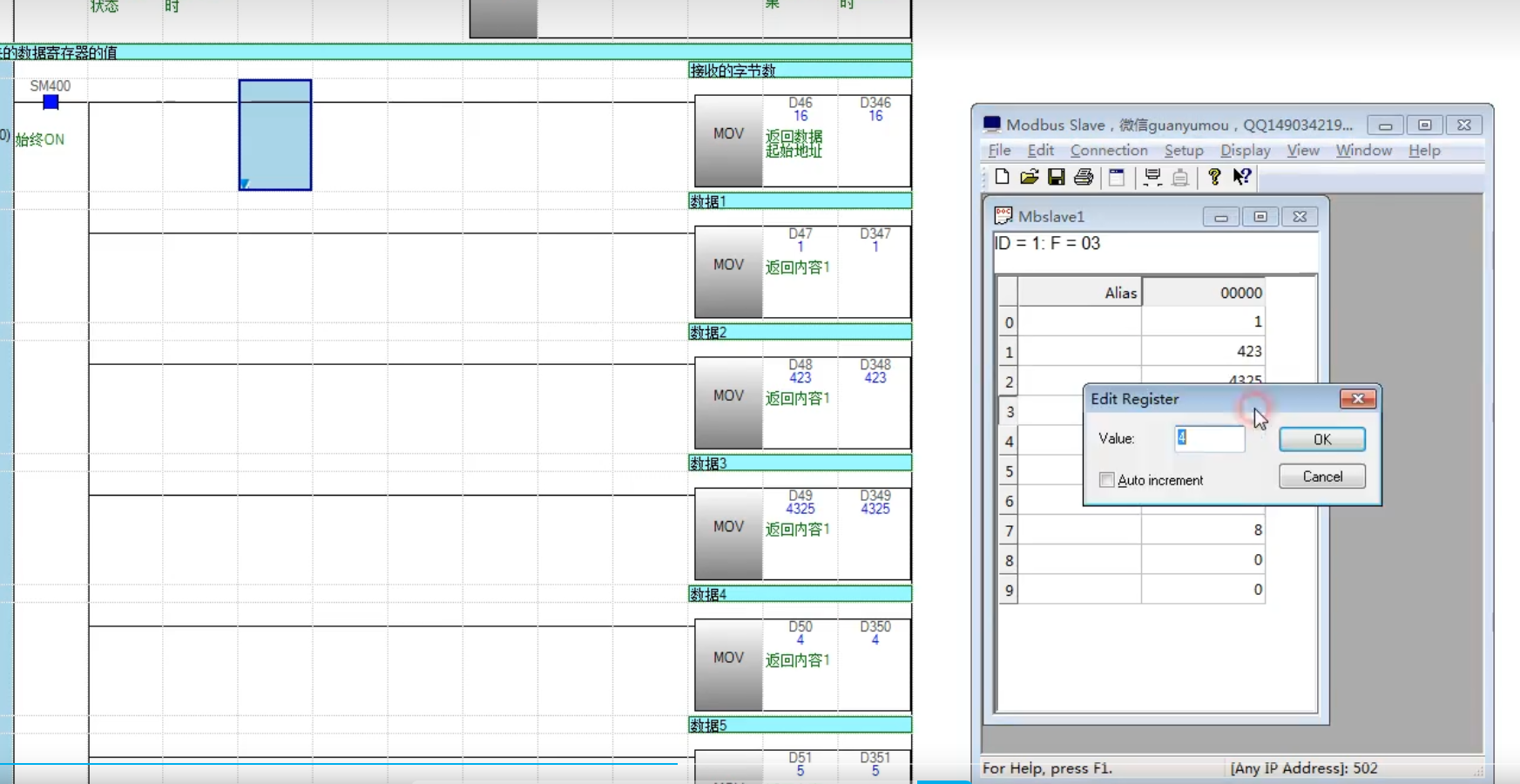 我有MODBUS TCP 的從站呀 而且IP地址與端口號都檢查過了