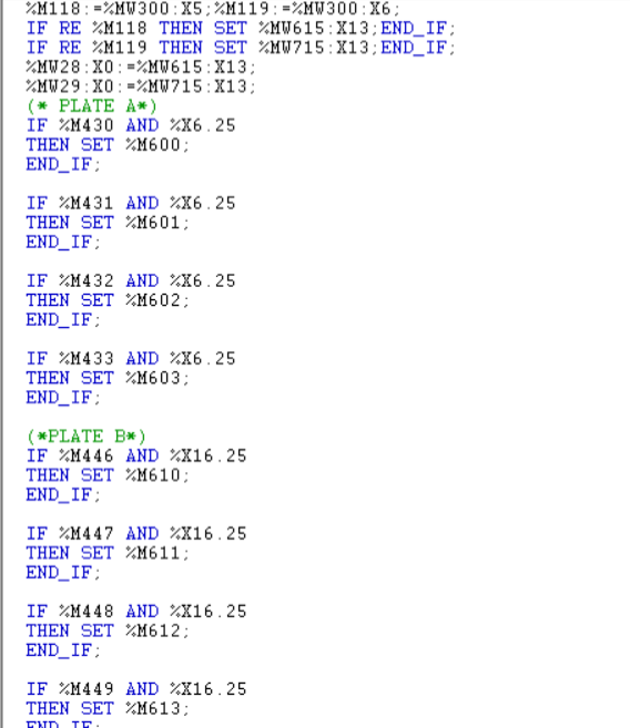 IF SM0.0 AND  L4.7 AND L16.7 AND (NOT L1.7 AND L2.7 OR  # startl0.0 AND L1.7 AND (AC2<>B OR NOT L14.3)  AND (L14.2  AND  AC1=B OR  L15.7))