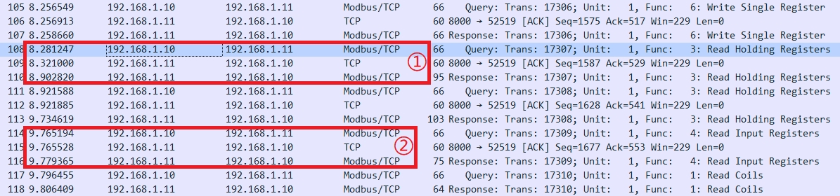 威綸通cmt2079x,用電腦通過modbus TCP讀取觸摸屏數(shù)據(jù),如下圖,①處,響應(yīng)很慢,要經(jīng)過0.6s才獲取數(shù)據(jù),②那里就正常,求解