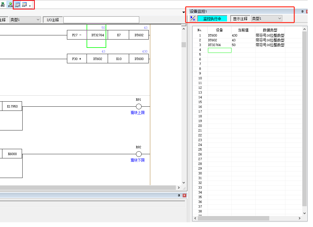 使用Ctrl+D 調(diào)出狀態(tài)監(jiān)控,啟動設(shè)備監(jiān)控,就可以修改數(shù)值。如果數(shù)值不能修改,就說明在程序中可能是運算結(jié)果。
